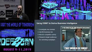 Understanding the companies you compete with, otherwise known as competitive analysis or competitive intelligence, is key to guiding your company strategy, product roadmap, and to make your sales and marketing more effective. (It's also really helpful when screening future employers before you sign the offer letter.) In this session, you'll learn how you to use OSINT to understand a company's financial situation, growth rate, product strengths and weaknesses, patents, internal structure, areas of investment, corporate strategy, technology stack, corporate culture, patents, and installed base.